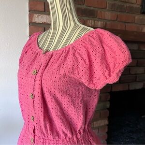 Eberjey Portola Elisa Off Shoulder Eyelet Mini Dress in Pink Sz M