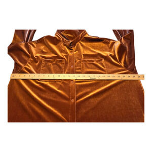 Retro Womens Burnt Orange Velvet Button Up Shirt Size 2XL Long Sleeve Grunge