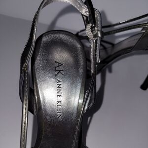 Anne Klein Women's Heel Open Toe sling back Strap Dark Silver Patent y2k Sandals