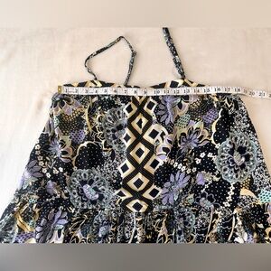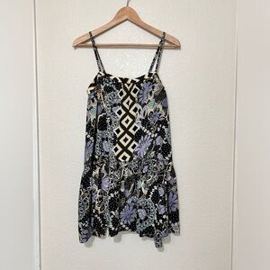 This Free People mini sundress features a striking black and white pattern, perfect for a casual night out or resort wear. The sleeveless design with spaghetti straps and a flowy A-line silhouette offers a chic and breezy look. Its lightweight fabric ensures comfort and graceful movement, making it ideal for warm evenings.