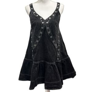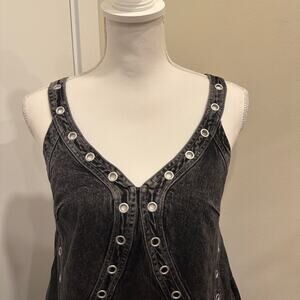 Pilcro NWT Dark Gray Sleeveless V-Neck Studded Grommet Denim Mini Dress Punk Alt