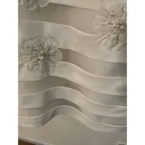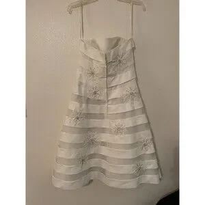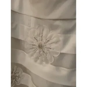 The Galina Davids Bridal Women's Size 6 Strapless Sweetheart Ivory Wedding Dress is a stunning gown perfect for a formal occasion like a wedding. Designed by Davids Bridal, this dress features intricate beading detailing, a sweetheart neckline, and a zipper back closure for easy wear. The sleeveless style and tea-length silhouette add elegance and sophistication to the overall look, making it a beautiful choice for any bride looking for a classic and timeless wedding dress.