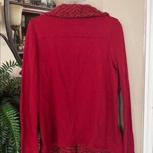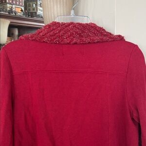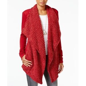 Brand New Lucky Brand Red Metallic Knit Shawl Open Front Drape Cardigan Sweater.