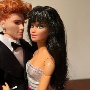 Barbie HTF 2008 Top Model Hair Wear Teresa doll head rebodied onto barbie made to move body wearing silver gown and pink heels. She has pink hair highlights on the underside of her hair.