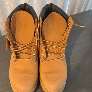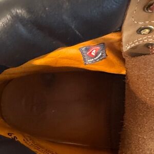 Rugged leather boots with sturdy laces. Ideal for outdoor adventures. Some small scuff marks on the R toes overall nice boots