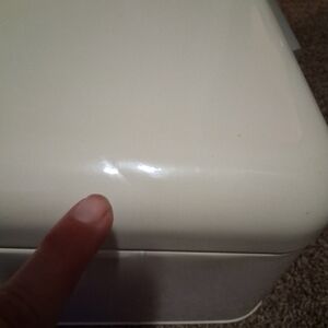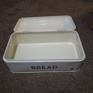 Keep your bread fresh with the Bread Box. Its sleek white design adds a modern touch to any kitchen. Inside is 8 x 16, 4.5. very clean, has a light ding ad seen in the last picture.