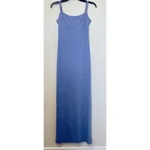 Y2K City Triangles Embellished Maxi Dress in Light Blue Size M USA Sparkly