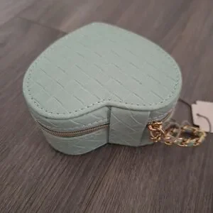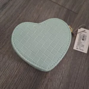 Heart-Shaped Mint Green Woven Jewelry Box With Zipper NWT