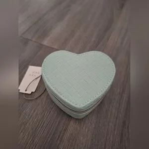 Charming heart-shaped jewelry box in a refreshing mint green. Features a woven design for a stylish touch.