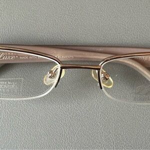 Chic Luxe glasses with rose gold frames. Embellished with Swarovski accents. Ideal for a stylish look.