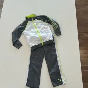 Puma kids tracksuit. Gray, white and neon yellow. 4T