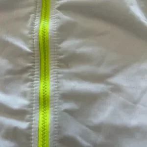Puma kids tracksuit with a sleek gray and white design. Accented with neon yellow details. Ideal for active play.