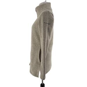 Stylish Columbia jacket with herringbone pattern. Full zip front. High collar for warmth.