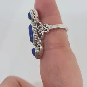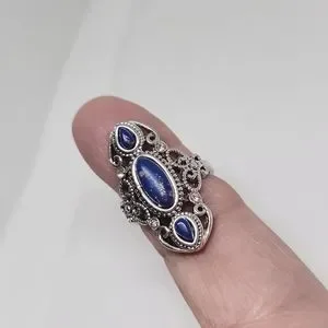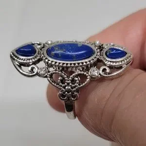 Ancient Silver Lapis-Lazuli Ring Faux Gemstones Silver Plated Blue Size 8 New