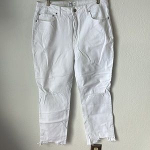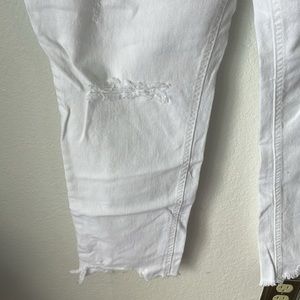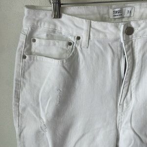 These jeans are a white color. Factory worn and raw edge details. These are slightly shorter. Inseam 27". Gently used condition. Size 31.