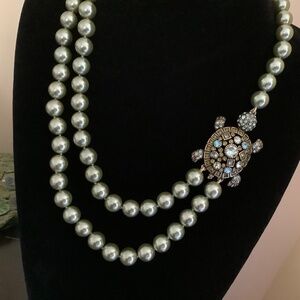 Heidi Daus "Simply Irresistible" Crystal Turtle Necklace And Matching Ring Pistachio