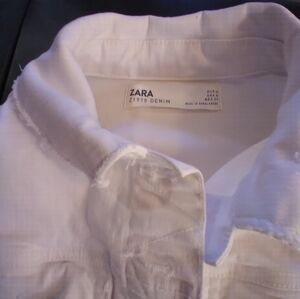 Zara Stylish White Denim Jean Jacket Womens Slight Distress Size M Fall Cozy