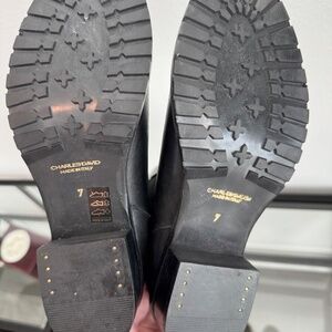 CHARLES DAVID made in Italy women’s Black leather tall riding boots Size 7 NWOB