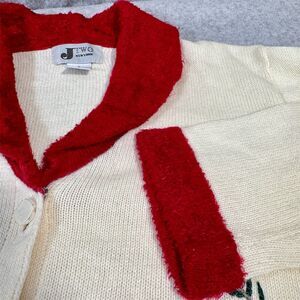 JTwo Women's Shawl Collar Knit Cardigan Sweater Size Small Cream Red Holiday