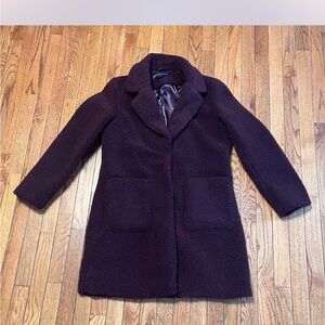 Womens French Connection Wine Colored Teddy Coat with Patch Pockets