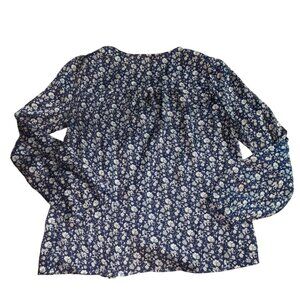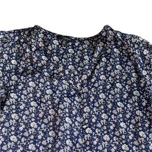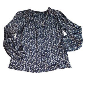 Lucky Brand Womens Floral Buttom Front Blouse W/ Balloon Sleeves-Blue-Size Small