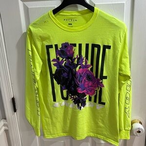 Pacsun Men’s Medium T-Shirt Long Sleeve Future Energy Neon Yellow Graphic Floral