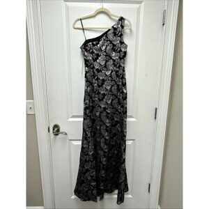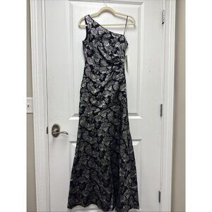 Eliza J Womens Size 2 Black One-Shoulder Jacquard Formal Gown Cocktail Dress NWT