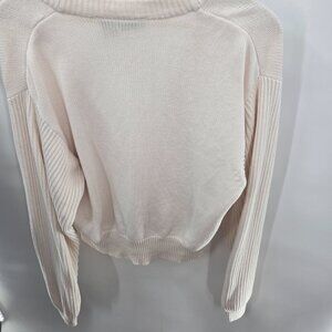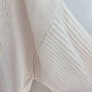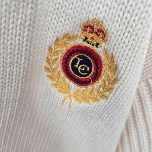 Vintage Liz Claiborne Cream Open Buttoned Logo Preppy Cotton Cardigan Small