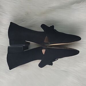 COLE HAAN Black Suede Pointed Toe Cut Out Bow Tie Accent Office Dress Flat Shoes