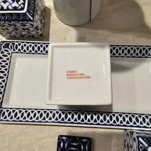 Bombay Blue and White Ceramic Condiment Canister Set W Tray
