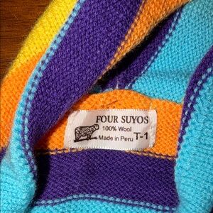 Four Suyos Girls Peruvian 100% wool hooded Sweater with Puffy embellishments. Size T1