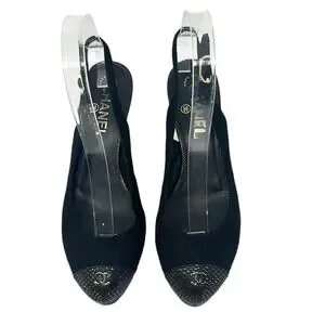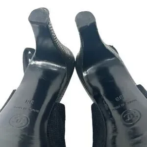 Chanel Tweed Slingback Cap Toe CC Logo Pumps Black Size 38