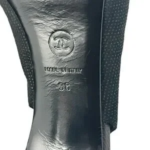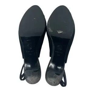 Chanel black tweed slingback heels.