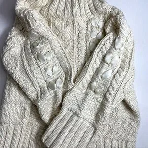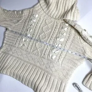 Ralph Lauren cabin core Vintage Denim & Supply Hard to find soft cable knit turtleneck sweater by Denim & Supply Ralph Lauren. Chunky quality thick fisherman sweater. The satin ribbon weaves through the yarn making this a unique sweater with many feminine touches. Girly sweater, snow sweater