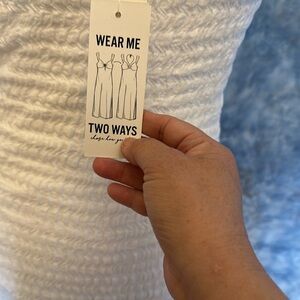 Brand new , just gorgeous, sheath dress with high slit. Perfect for beachwear, summer and possible wedding dress. Sweetheart neckline. Two ways to wear. (See picture). Approximate measurements: length from top of shoulder to hemline is 50 in; pit to pit ( measured flat) is 13; liner is 22 in; slit is 20 in. Easy care and stretchable fabric. This sale is final. Please ask questions before purchasing.