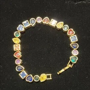 Dazzling bracelet with colorful gemstones. Set in gold tone. Perfect for any occasion.