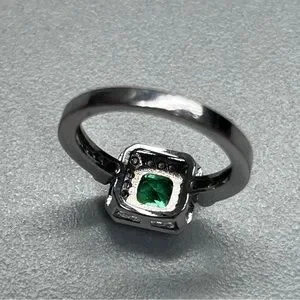 Purchased online from Ring Bomb Party. Emerald is supposed to be real, may be lab created. Not sure about diamonds on side. Metal is Rodium plating.