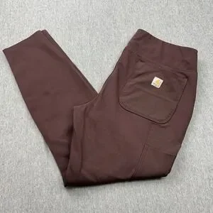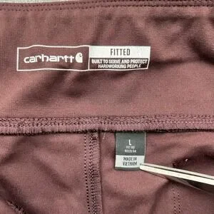 Carhartt Fitted Pants. Purple, color code V26 states blackberry. Women's Large (12-14), see measurements. Pull On with elastic waist. Double Knee front. Style code 102482.