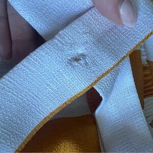 The red and white one was inspiration. Holding a dinner party or beach clambake? This is stunning and perfect. Two flaws and shown in photos- on the upper right thigh from a catch you can see a small hole with some pilling. Then the bow/tie where it was clasped has a hole but hidden when tied up. Medium.