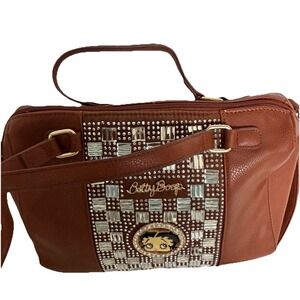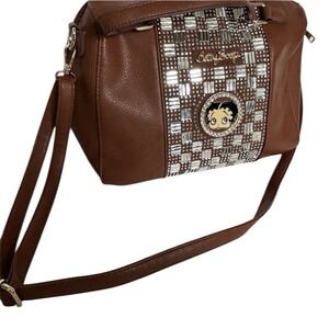 Betty Boop Rhinestone Bag Brown Double Top Handles Detachable Crossbody Strap