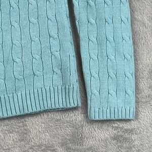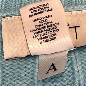Ann Taylor LOFT Womens S Cable Knit V Neck Sweater Aqua Rabbit Hair Blend