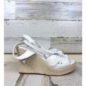 Milanoice Women’s 9 White Lace Platform Wedge Espadrille Sandals Bridal NEW