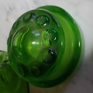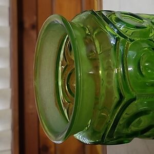 Elegant emerald green glass jar featuring a decorative lid. Ideal for storage or display.