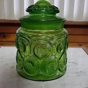 Emerald Green Moon Ans Stars Glass Jar with Lid (111)