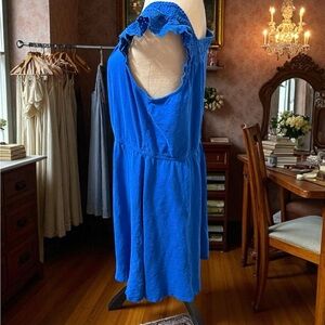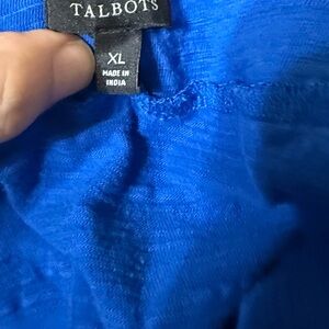Elegant Talbots midi dress in vibrant blue. Features a crochet neckline and a flowing silhouette. Perfect for any occasion.