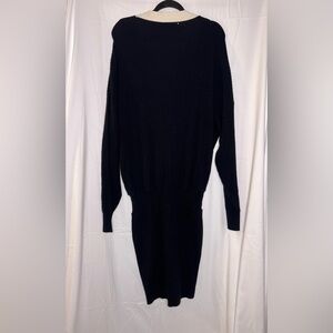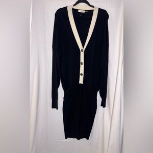 Designed with a blouson bodice and slim-fitting skirt. Decorative buttons at the cardigan-style placket. Ribbed knit offers a lot of give but may irritate those with sensitive skin.
