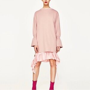 New with tags!! Zara Dress Women’s Blogger Favorite Frilled Pink Midi Dress Ruffled Hem Boho