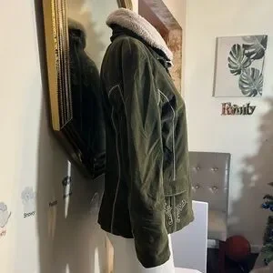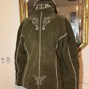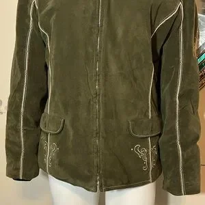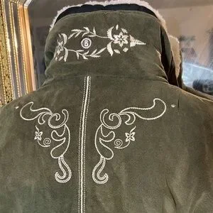 Vintage Bogner Olive Green Women's Ski Jacket with White Embroidery