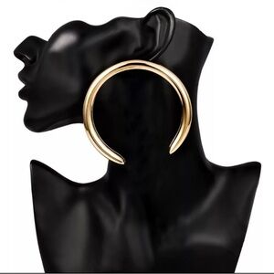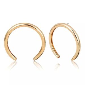 Mega large thick gold tone crescent moon hoop earrings. Super light weight and easy to wear on those days you want to bling out. Brand new. For pierced ears. Measures 3.25” in diameters.