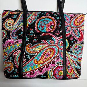 Classic Small Trimmed Vera style in the Parisian Paisley print. Zip closure, multiple interior pockets, and faux-leather trim. Lightweight and perfect for daily use.